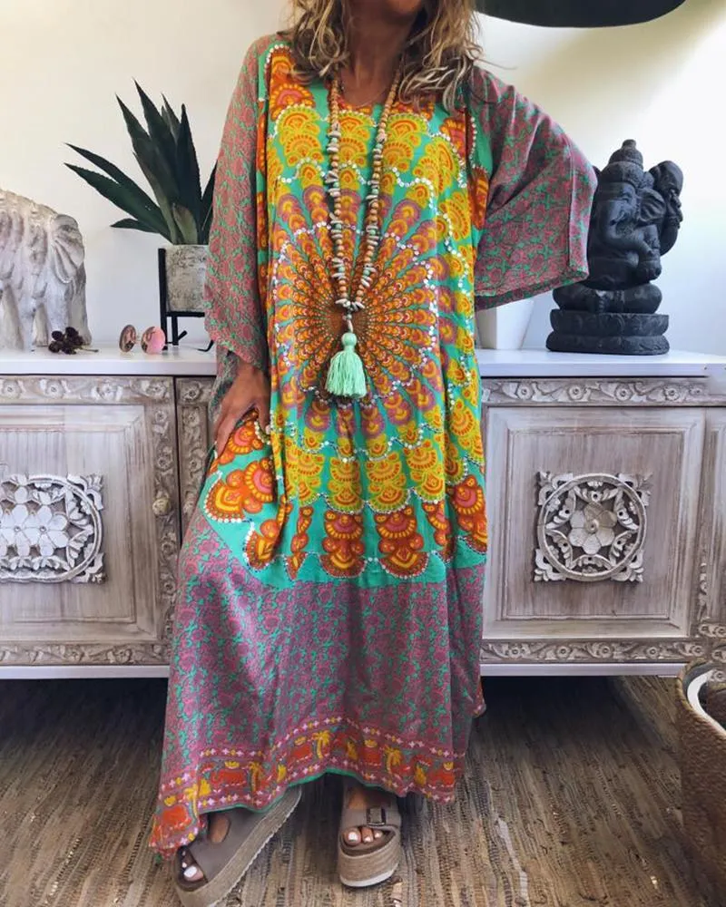 Be the first to review “【Ship in 24 hours】Vintage Floral Print Batwing Sleeve Plus Size Maxi Dress”